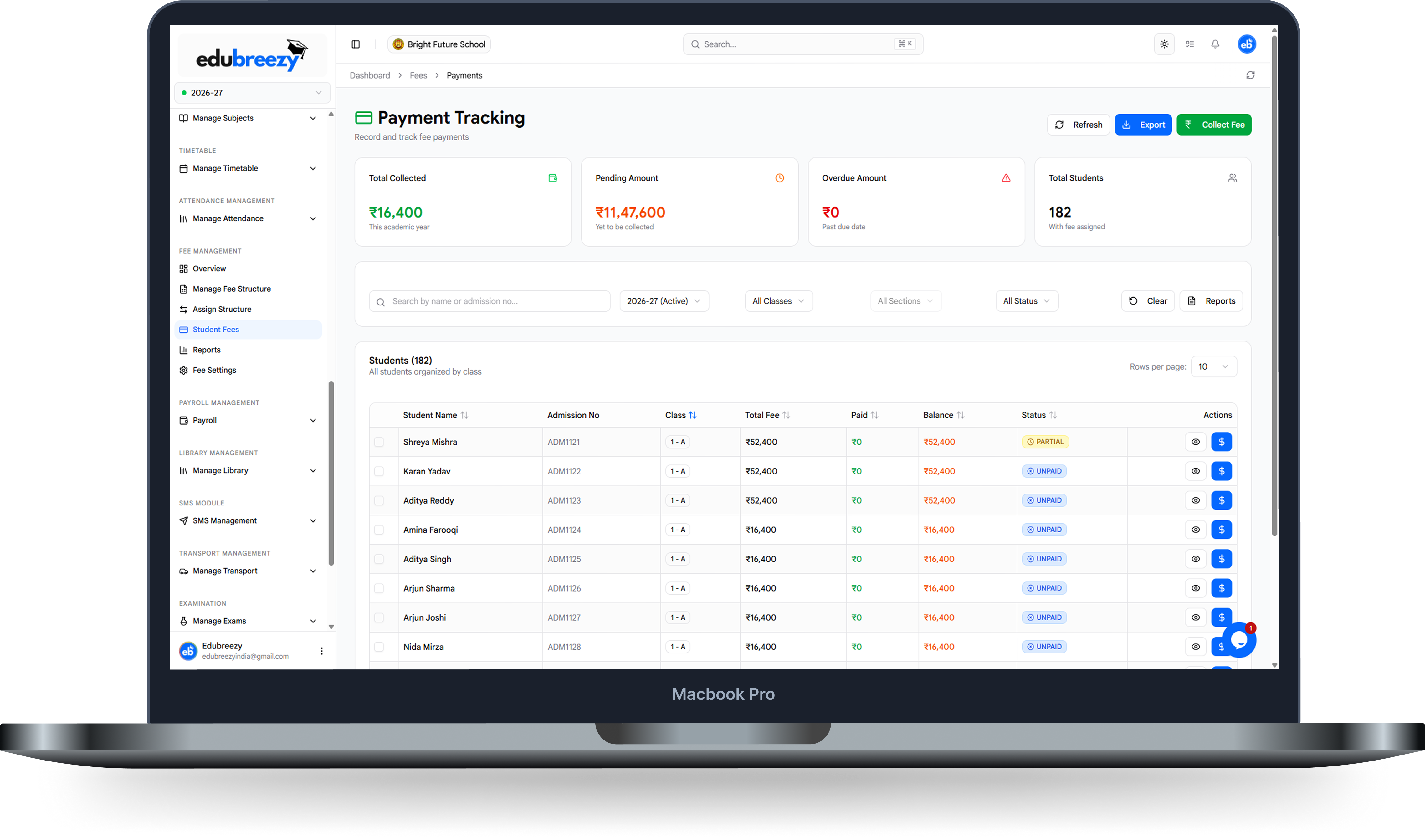 Explore the beautifully crafted screens that make EduBreezy a joy to use every day — for teachers, parents, and administrators alike.